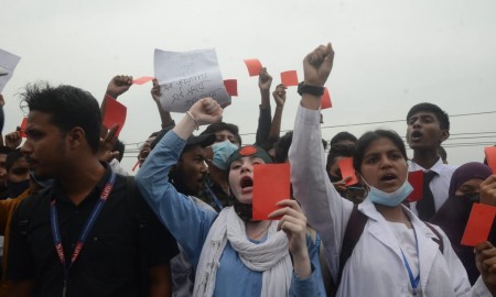 নিরাপদ সড়কের দাবিতে লাল কার্ড হাতে রাজপথে শিক্ষার্থীরা