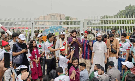 ৩ দাবিতে সংসদ ভবনের গেটে জুলাই যোদ্ধাদের অবস্থান