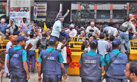 ব্যারিকেড ভেঙে শাহবাগে শিক্ষকরা, যানচলাচল বন্ধ