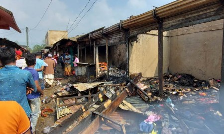 গোয়াইনঘাটে অগ্নিকাণ্ডে ১২টি দোকান পুড়ে ছাই