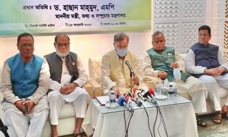 তথ্যমন্ত্রীকে সিলেট প্রেসক্লাবের ফুলেল শুভেচ্ছা
