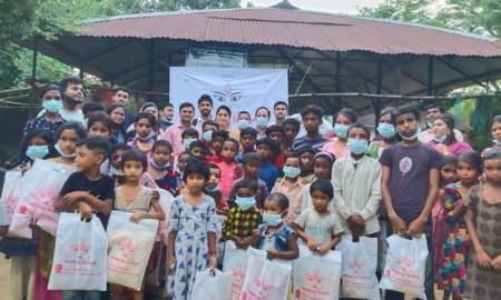 চা-শ্রমিকের সন্তানদের মাঝে সনাতন বিদ্যার্থীদের শারদবস্ত্র বিতরণ