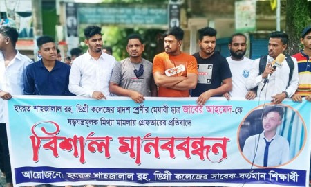 জৈন্তাপুরের কলেজ ছাত্রের মুক্তির দাবীতে প্রতিবাদ ও মানববন্ধন