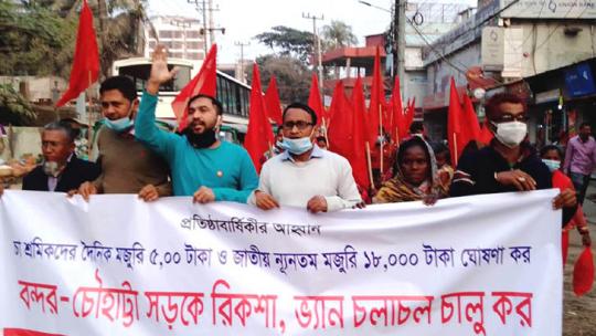 বন্দর-চৌহাট্টা সড়কে রিকশা, ভ্যান চালুর দাবি শ্রমিক ফ্রন্টের