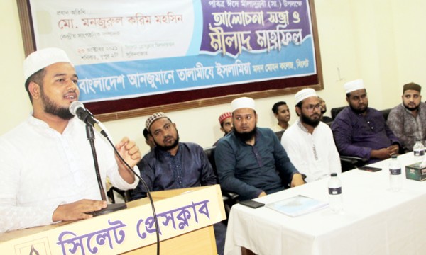 আজ শনিবার (২৩ অক্টোবর) বিকাল ৩টায় সিলেট প্রেসক্লাবে বাংলাদেশ আনজুমানে তালামীযে ইসলামিয়া সিলেট মদন মোহন কলেজ শাখা আয়োজিত পবিত্র ঈদে মীলাদুন্নবী (সা.) উদযাপন উপলক্ষে আলোচনা সভায় প্রধান অতিথির বক্তব্যে তিনি এসব কথা বলেন।