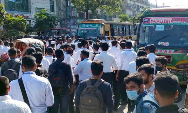 এ সময় অবিলম্বে হাফ ভাড়া কার্যকর করাসহ শিক্ষার্থীদের সঙ্গে বাসচালক ও হেলপারদের দুর্ব্যবহার বন্ধের দাবিতে বিভিন্ন স্লোগান দিতে থাকেন তারা।