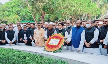 আজ শনিবার টুঙ্গিপাড়ায় বঙ্গবন্ধুর সমাধিতে ফুল দিয়ে সিলেট মহানগর আওয়ামী লীগের পক্ষে শ্রদ্ধা জানান পররাষ্ট্রমন্ত্রী এ কে আব্দুল মোমেন। পরে বঙ্গবন্ধু ও ১৯৭৫ সালের ১৫ আগষ্ট বঙ্গবন্ধু পরিবারের নিহত শহীদ সদস্যদের রুহের মাগফেরাত কামনা করে ফাতেহা পাঠ ও বিশেষ মোনাজাতে অংশ নেন তিনি।