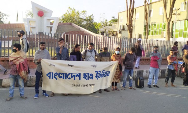 বাংলাদেশ ছাত্র ইউনিয়ন সিলেট জেলার সভাপতি দীপঙ্কর সরকারের সভাপতিত্বে ও সাধারণ সম্পাদক নাহিদ হাসান প্রান্তিকের সঞ্চালনায় বিক্ষোভ সমাবেশে বক্তব্য দেন, বাংলাদেশ ছাত্র ইউনিয়ন কেন্দ্রীয় সহ-সভাপতি সরোজ কান্তি, এমসি কলেজের সভাপতি পঙ্কজ চক্রবর্তী জয়, মদন মোহন কলেজের সাংগঠনিক সম্পাদক সৈকত ভৌমিক, দক্ষিণ সুরমা উপজেলা ছাত্র ইউনিয়ন সংসদের সাংগঠনিক সম্পাদক মিজু আহমদ প্রমুখ।