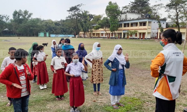 বয়ঃসন্ধিকাল অতিক্রম করা একঝাঁক কিশোর-কিশোরী কণ্ঠ ছেড়ে গাইছে, ‘আমরা করব জয়, আমরা করব জয় একদিন। কিংবা কণ্ঠ ছেড়ে আবৃত্তি করছে ‘থাকব নাকো বদ্ধ ঘরে দেখব এবার জগৎটাকে, কেমন করে ঘুরছে মানুষ যুগান্তরের ঘূর্ণিপাকে...’। আত্মরক্ষার জন্য তারা শিখছে কারাতে।