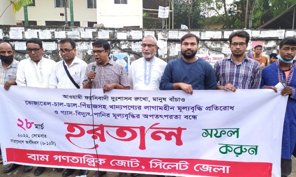 বক্তারা এসময় বলেন, ‘সারাদেশে লাগামহীন দ্রব্যমূল্য বৃদ্ধির কারণে জনজীবন দুর্বিষহ হয়ে উঠেছে। মানুষ এখন কম খেয়েও সংসার চালাতে পারছে না। করোনার কারণে একদিকে দেশে লক্ষাধিক মানুষ কাজ হারিয়েছে। অন্যদিকে ব্যবসায়ী সিন্ডিকেটের কারণে নিত্যপণ্যের দাম আকাশ ছোঁয়া। কিন্তু সরকার আজ জনগণের দিকে না তাকিয়ে ব্যবসায়ীদের স্বার্থ দেখছে। এ অবস্থায় মানুষের জীবন বাঁচাতে আগামী ২৮ মার্চের হরতাল সফল করতে হবে।’