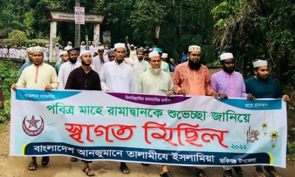 বাংলাদেশ আনজুমানে তালামীযে ইসলামিয়া জকিগঞ্জ উপজেলা শাখার উদ্যোগে পবিত্র মাহে রামাদ্বান-কে স্বাগত জানিয়ে স্বাগত মিছিল করা হয়েছে। বৃহস্পতিবার (৩১ মার্চ) বাদ যোহর জকিগঞ্জ পৌর শহরের বিভিন্ন সড়ক প্রদক্ষিণ করে মিছিল এম এ হক চত্বরে এসে পথসভায় মিলিত হয়।