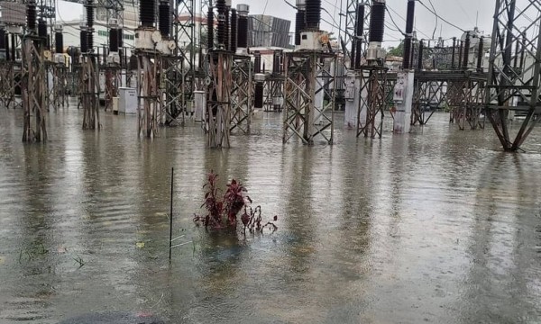 প্রবল বৃষ্টির কারণে কুমারগাওয়ে বিদ্যুতের জাতীয় গ্রিড লাইনের উপকেন্দ্রে সকালের দিকে পানি ঢুকতে শুরু করলে বিদ্যুৎহীন হয়ে পড়ে পুরো সিলেট।