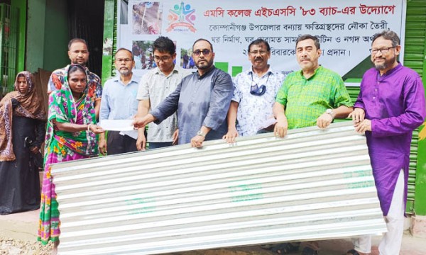 সিলেটের ঐতিহ্যবাহী শিক্ষা প্রতিষ্ঠান এমসি কলেজের এইচএসসি ব্যাচ ১৯৮৩ এর উদ্যোগে কোম্পানীগঞ্জের বিভিন্ন এলাকায় বন্যায় ক্ষতিগ্রস্তদের মাঝে নগদ অর্থ ও ঢেউটিন বিতরণ করা হয়েছে।