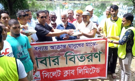 স্মরণকালের ভয়াবহ বন্যায় মানুষ যখন দিশেহারা। মানুষ যখন বিপাকে। বন্যার আঘাতে সবহারিয়ে নিঃস্ব হয়ে পড়েছেন মানুষ। শেষ আশ্রয় হয়েছে বিভিন্ন আশ্রয়কেন্দ্রে। এমন সময় মানবতার ডাকে এসব দিশেহারা মানুষের পাশে দাঁড়িয়েছে সিলেট ক্লাব লিমিটেড। বন্যার ভয়াবহতার শুরু থেকেই বিভিন্ন আশ্রয়কেন্দ্রে থাকা অসহায় মানুষের মধ্যে বিতরণ করা হয়েছে রান্না করা খাবার। রান্না করা খাবার বিতরণ করেই থেমে থাকেনি সিলেট ক্লাব। পরিস্থিতির উন্নতি হওয়ার সঙ্গে সঙ্গেই ক্লাবের পক্ষ থেকে প্যাকেট ভর্তি খাদ্যসামগ্রী বিতরণ করা হয়। এ ছাড়া সরকারের বিভিন্ন দায়িত্বশীল সংস্থা ও বিভিন্ন সংগঠনকেও দেওয়া হয় সহায়তার চেক।