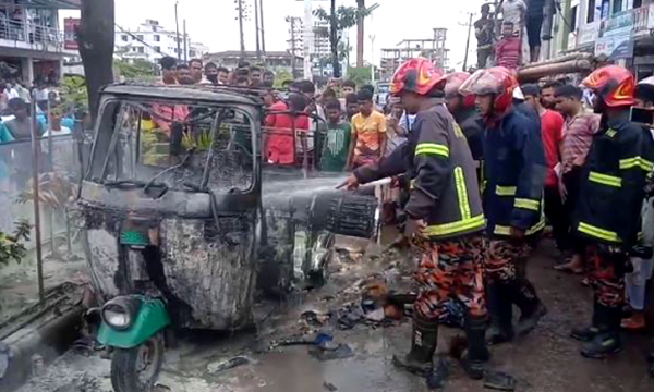 আগুনে পুড়ে যাওয়া অটোরিকশা।