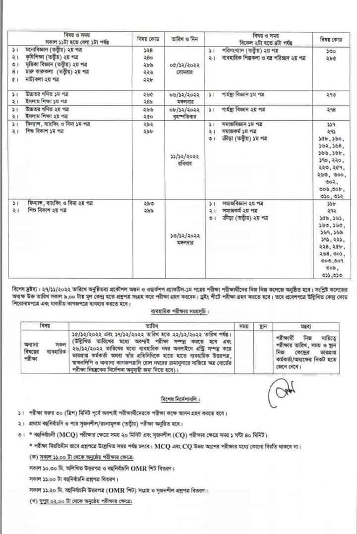 পরীক্ষা সূচিতে জানানো হয়, পরীক্ষা শুরুর অন্তত ৩০ মিনিট আগে পরীক্ষার্থীদের নিজ নিজ আসনে বসতে হবে।