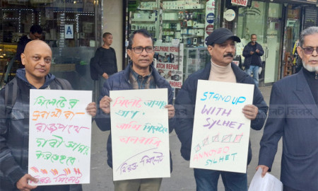 একই দাবিতে যুক্তরাজ্যে বসবাসরত ‘সিলেটের প্রবাসীবৃন্দ’ ব্যানারে লন্ডনের আলতাব আলী পার্কে সেখানকার স্থানীয় সময় আজ বৃহস্পতিবার (১৬ অক্টোবর) সন্ধ্যা ছয়টায় বিক্ষোভ সমাবেশ হবে। সিলেটের উন্নয়নে সরকারের বৈষম্যমূলক আচরণের অভিযোগে এ কর্মসূচি পালনের ঘোষণা দেন প্রবাসী সিলেটিরা।