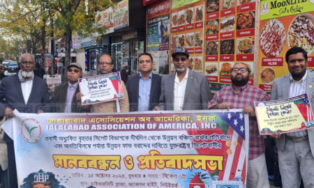 বুধবার (১৫ অক্টোবর) যুক্তরাষ্ট্রের স্থানীয় সময় বিকাল ৩টায় নিউইয়র্কের জ্যাকসন হাইটস ডাইভার্সিটি প্লাজার সামনে এই প্রতিবাদী অবস্থান কর্মসূচির আয়োজন করে ‘বিরক্ত সিলেটবাসী’।