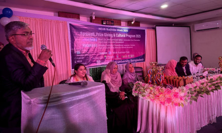 জমকালো আয়োজনে নর্থ ইস্ট ইউনিভার্সিটি বাংলাদেশের (এনইইউবি) বিজনেস ক্লাবের উদ্যোগে পুরস্কার বিতরণ, বিভিন্ন ব্যাচের শিক্ষার্থীদের বিদায় সংবর্ধনা ও সাংস্কৃতিক অনুষ্ঠান অনুষ্ঠিত হয়েছে।