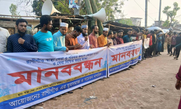 এই পরিস্থিতিতে কার্যকর স্বাস্থ্যসেবা নিশ্চিতের দাবিতে শুক্রবার স্থানীয় যুবসমাজ ও সচেতন নাগরিকদের উদ্যোগে মানববন্ধন অনুষ্ঠিত হয়।