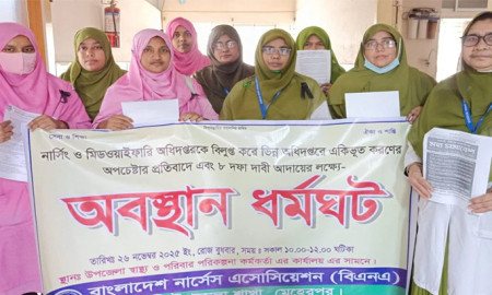 গাংনীতে নার্সদের অবস্থান ধর্মঘট
