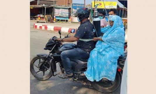 শরীরে অক্সিজেন সিলিন্ডার, বাইকের পেছনে করোনাক্রান্ত মা