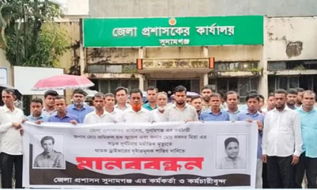 সুনামগঞ্জে জেলা প্রশাসনের দুই কর্মীর মৃত্যুতে সহকর্মীদের কান্না, চালকের শাস্তি দাবি