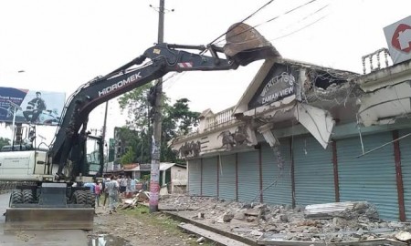 নগরে চলছে অবৈধ স্থাপনা উচ্ছেদ অভিযান