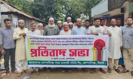 কোম্পানীগঞ্জে চেয়ারম্যান বিরুদ্ধে মামলার প্রত্যাহারের দাবীতে ব্যবসায়ীদের সভা
