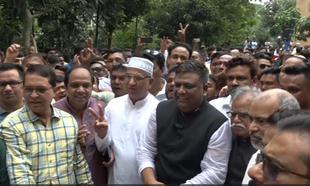 নেতাকর্মীদের নিয়ে মনোনয়ন জমা দিলেন আনোয়ারুজ্জামান, ইভিএম নিয়ে শঙ্কা মাহমুদুলের
