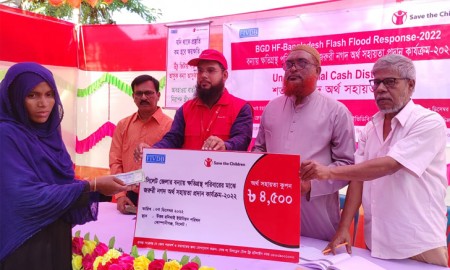 কোম্পানীগঞ্জে বন্যায় ক্ষতিগ্রস্তদের মাঝে এফআইভিডিবির জরুরি অর্থ সহায়তা বিতরণ
