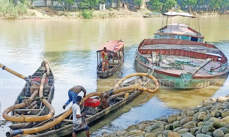 কোম্পানীগঞ্জে অবৈধভাবে বালু উত্তোলন, নৌকাসহ আটক ২