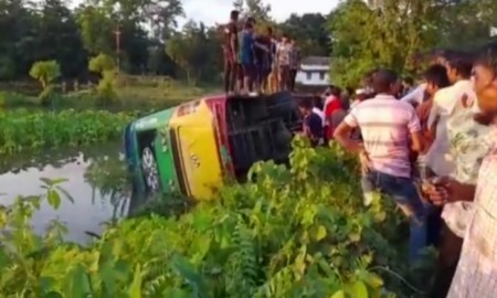 গোলাপগঞ্জে যাত্রীবাহী বাস নিয়ন্ত্রণ হারিয়ে খাদে