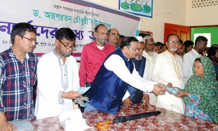 মাখফিরা খান ও মোস্তফা চৌধুরী ফাউন্ডেশনের ত্রাণ ও ঔষধ বিতরণ