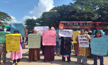 শাবিপ্রবিতে ক্লাস-পরীক্ষা বর্জন করে আন্দোলনে শিক্ষার্থীরা