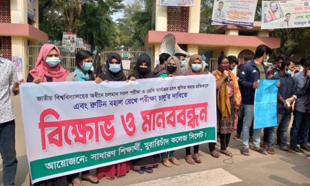 জাতীয় বিশ্ববিদ্যালয়ের পরীক্ষা বন্ধের প্রতিবাদে সিলেটে বিক্ষোভ