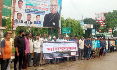 আট দফা দাবিতে সিলেটে পরিবহন মালিক-শ্রমিকদের মানববন্ধন