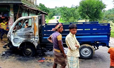 জৈন্তাপুরে গভীর রাতে মিনি ট্রাকে আগুন