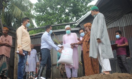 কোম্পানীগঞ্জে বন্যা ও ভাঙনে ক্ষতিগ্রস্তরা পেলেন ত্রাণ