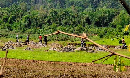 জৈন্তাপুরে সীমান্ত পেরিয়ে পাথর উত্তোলন, ঝুঁকিতে শ্রমিকরা