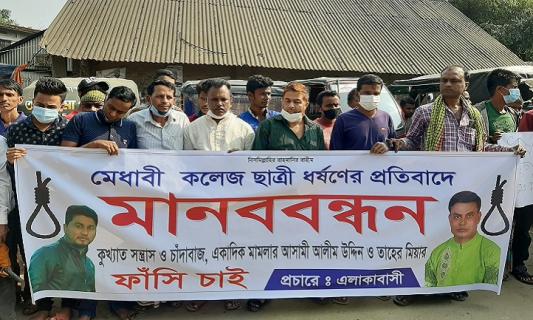গোয়াইনঘাটে কলেজছাত্রীকে ধর্ষণের প্রতিবাদে মানববন্ধন