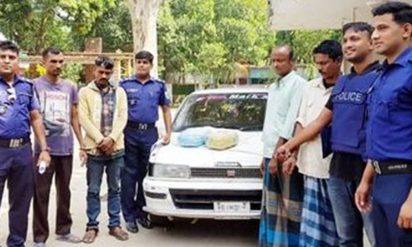 আটককৃতরা হলেন- সুনামগঞ্জ জেলার জগন্নাথপুর উপজেলার লহরী গ্রামের মায়া মিয়ার ছেলে শাহনাজ মিয়া (৪১), সিলেট জেলার বিয়ানীবাজার উপজেলার রামখা মোহাম্মদপুর গ্রামের মৃত জহুর আলীর ছেলে ফুজায়েল আহমদ ওরফে শাহীন (৪০), একই উপজেলার কাকরদিয়া গ্রামে মৃত শফিক উদ্দিনের ছেলে আব্দুর সবুর (৩১), ছাতক উপজেলার ঝিঘলী গ্রামের ফাজিল মিয়ার ছেলে দুলাল মিয়া (৪৪)। এসময় মাদক বহনকারী একটি প্রাইভেট কার জব্দ করে পুলিশ।