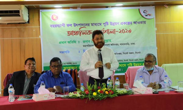 সিলেটে আয়োজিত কর্মশালায় বক্তব্য দেন কৃষি সম্প্রসারণ অধিদপ্তর খামারবাড়ী‘র মহাপরিচালক আসাদুল্লাহ।