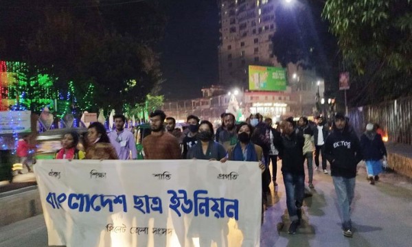 বাংলাদেশ ছাত্র ইউনিয়ন সিলেট জেলার ৩৬তম জেলা সম্মেলন আগামীকাল শনিবার (১৮ ডিসেম্বর) অনুষ্ঠিত হবে। সম্মেলন সফলে আজ শুক্রবার (১৭ ডিসেম্বর) রাতে প্রচার মিছিল বের করে ছাত্র ইউনিয়ন।