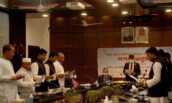 সিলেটের জৈন্তাপুরে পাঁচ ইউপি চেয়ারম্যানের শপথ গ্রহণ করলেন।