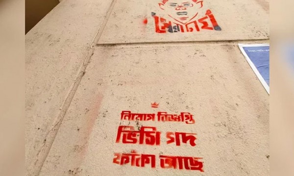 শিক্ষার্থীরা বলছেন, আন্দোলনকারী শিক্ষার্থীদের আমরণ অনশন সত্ত্বেও উপাচার্যের ‘টনক না নড়ায়’ দেয়ালে দেয়ালে এ ‘চিকা’ মেরে থাকতে পারেন কেউ।