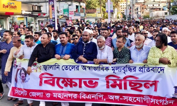 জ্বালানি তেলের মূল্য বৃদ্ধির প্রতিবাদে আজ বিকেলে সিলেটে বিএনপির বিক্ষোভ মিছিল।