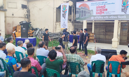 সম্মিলিত নাট্য পরিষদ সিলেটের সভাপতি মিশফাক আহমেদ মিশুর সভাপতিত্বে এবং সাধারণ সম্পাদক রজত কান্তি গুপ্তের পরিচালনায় প্রতিবাদী সাংস্কৃতিক সমাবেশে সংহতি জানিয়ে বক্তব্য দেন, প্রবীণ সাংস্কৃতিক ব্যক্তিত্ব বীর মুক্তিযোদ্ধা ব্যারিস্টার মো. আরশ আলী, প্রবীণ সাংবাদিক আল-আজাদ, সিলেট প্রেসক্লাবের সাবেক সভাপতি ইকরামুল কবির, সিলেট সিটি করপোরেশনের কাউন্সিলর তৌফিক বক্স লিপন, রকিবুল ইসলাম ঝলক, সৈয়দ তৌফিকুল হাদি, বাংলাদেশ আবৃত্তি সমন্বয় পরিষদের কেন্দ্রীয় সহ-সভাপতি মোকাদ্দেছ বাবুল, সাংস্কৃতিক সংগঠক শামসুল বাছিত শেরো, নিরঞ্জন দে যাদু, সম্মিলিত সাংস্কৃতিক জোটের কেন্দ্রীয় সদস্য শামসুল আলম সেলিম, সিলেট জেলা শাখার সাধারণ সম্পাদক গৌতম চক্রবর্তী, বাংলাদেশ নৃত্যশিল্পী সংস্থা সিলেট বিভাগের সাধারন সম্পাদক নিলাঞ্জনা যুঁই, পরিবেশ আন্দোলনের নেতা আব্দুল করিম কিম, সিলেট ফটোগ্রাফিক সোসাইটির সভাপতি ফরিদ আহমদ, ইমজা সিলেটের সভাপতি মইনউদ্দিন মনজু।