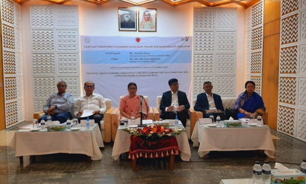 সিলেট চেম্বার অব কমার্স অ্যান্ড ইন্ডাস্ট্রি (এসসিসিআই) অর্থনৈতিক সম্পর্ক বিভাগের (ইআরডি) টেকসই গ্র্যাজুয়েশন প্রজেক্টের (এসএসজিপি) সহায়তায় জেলা প্রশাসনের সহযোগিতায় আজ সিলেট সার্কিট হাউস সম্মেলন কক্ষে ‘লোকাল লেভেল স্টেকহোল্ডার্স কনসালটেশন অন ইনক্লুসিভ, স্মুথ এন্ড সাসটেইনেবল এলডিসি গ্রাজুয়েশন’ শীর্ষক কর্মশালাটির আয়োজন করে।