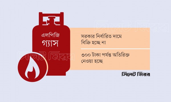 গতমাসে ১২ কেজির একটি সিলিন্ডারের দাম ছিল ১ হাজার ২৩২ টাকা। বাংলাদেশ এনার্জি রেগুলেটরি কমিশন (বিইআরসি) গত বৃহস্পতিবার সরকারিভাবে এর নতুন দাম ১ হাজার ৪৯৮ টাকা নির্ধারণ করে। কিন্তু বাজারে সরকার নির্ধারিত দামে গ্যাস সিলিন্ডার পাওয়া যাচ্ছে না বলে অভিযোগ করেছেন গ্রাহকরা। ১ হাজার ৪৯৮ টাকার সিলিন্ডার সর্বনি¤œ ১ হাজার ৬৫০ টাকা এবং সর্বোচ্চ ১ হাজার ৮০০ টাকা দিয়ে কিনতে হচ্ছে খুচরা ক্রেতাদের। গ্রাহকরা বলছেন সিলেটে এলপিজির দামে স্বেচ্ছাচারিতা করছেন ব্যবসায়ীরা।